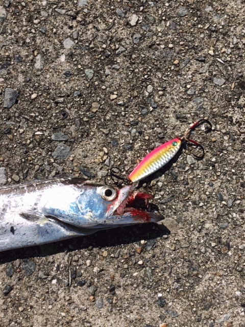 明るい時間帯は、ZZスタップ 30g マズメピンクでサゴシを狙いです。
