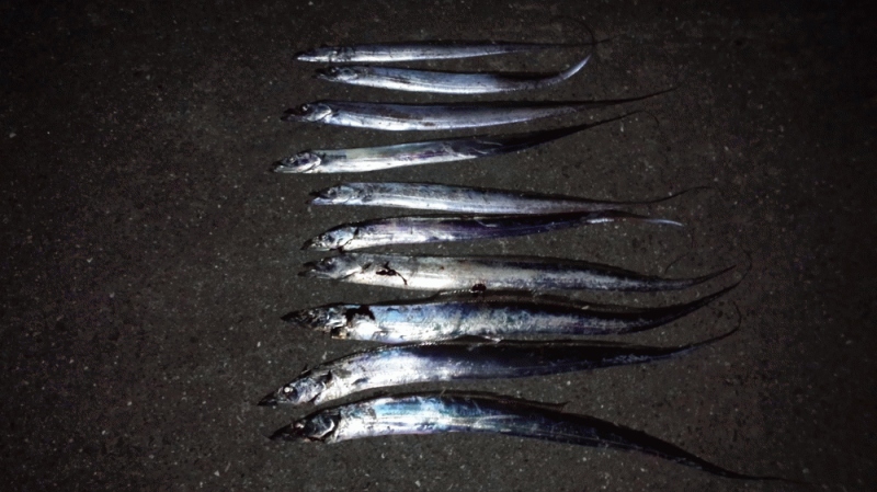 タチウオの方は、夕マズメ17時に、お約束カラーMT-5ファーストヒット、F3.5。