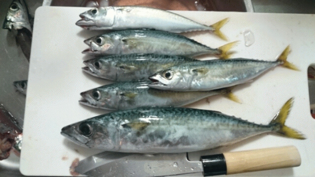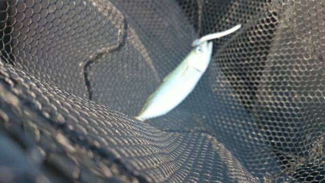 本日も昨日に続いて調査!調査!って事で爆風残る中いつもの場所に!相変わらず川側は濁ってるので潮通しのいい箇所で釣りに!うねりもひん入ってきて時たま被る箇所を避け足場の確保をしてまずはソルティクローラを投げてると周りでベイトたちが騒いでる、その方向に投げるが中々。バイトが出ないのでそのまま沈めてトントントンと大き目にシャクリを入れてフォールの繰り返し潮の緩む所で引ったくる当たりが出たのですかざす合わせると小気味いい引きに!小型の鯖!が釣れました!その後数匹上げたあと活性は良いけどー当たらないと思ったらシラスが針に!ということで本当はソルティクローラを透明の色に変える所をマナティへチェンジ!勿論透明な色に!フォールで魚が付く感じの当たりがあるものの食わない!そこでトントンシャクリを入れフォールでゴッンと!鯖が連続で!シャクリ中に当たる個体とフォールで当たる個体と色々試し釣りが出来ましたが最後に変わった当たりが出てきたが乗らない、そこで底にトントンシャクリをいれたらひったくっていくのですかざす合わせると目測30は超えてる!まぁいいや抜いてしまえと思って抜き上げた時に鯵の顔が!口が切れてオートリリース!泣きながら帰ってきました!鯖が居る所には鯵がいる!明日は朝マズメを狙って調査!鯵がいる!事が解ったから明日は負けないぞー!爆釣モードに入ったので釣り上げ写真は最初のだけを後は家に帰ってさばいてる途中で気づいたので数は足りてませんが(笑)