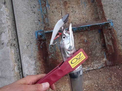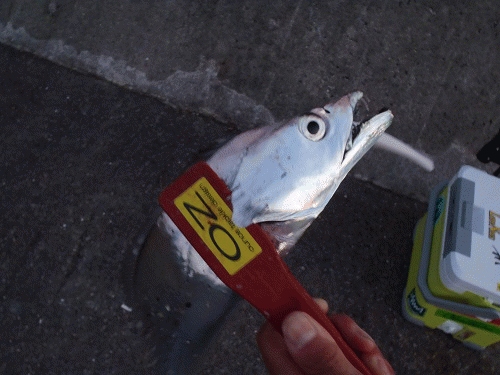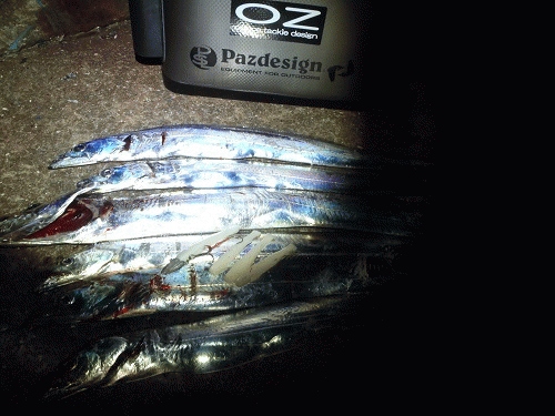 二日続けて武庫一へ行ってきました。今日の夕方は本命の太刀魚狙いです。潮がいまいちかな~と思ってましたが5時半あたりには海面もそれなりに騒がしくなりベイトが逃げ回りだしました。定番のパールホワイトに5/8のZZヘッドで始めました。早速ガツンと大きなアタリです。慎重にやり取りして引き抜くと80センチ級のアベレージサイズです。マナティーを見てみるとトレブルフックおよびアシストも丸呑みです。ですので今日は大丈夫だと確信しました。結局最後までパールで通しました。途中指5本のメーターオーバーも出現しましたが見事にカラーが合っていたためガッチリと針ががりしていたため楽々引きぬけましたよ。シーズンにはこんなご褒美もありかな!?次は数を伸ばしたいです。