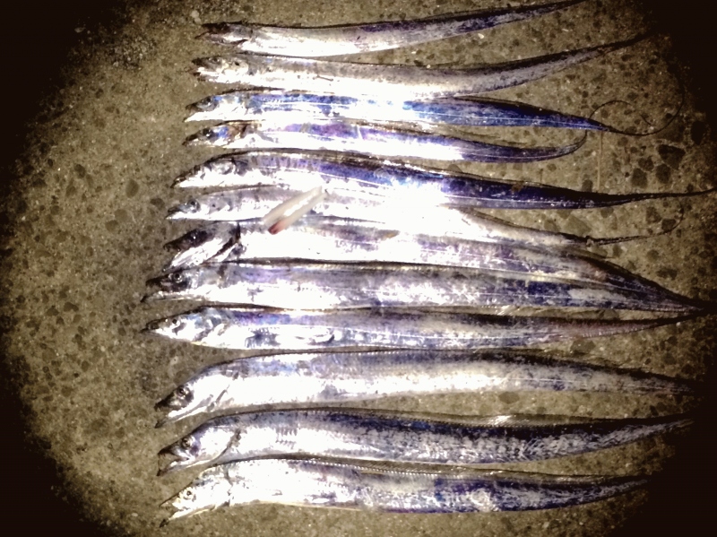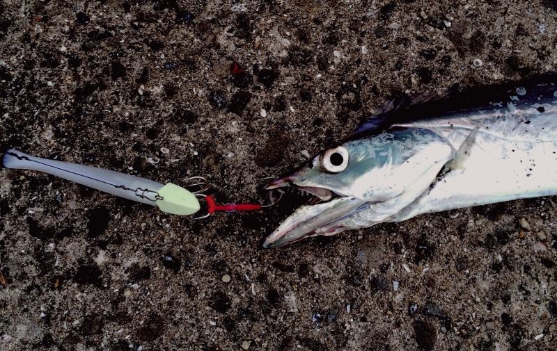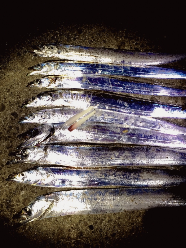 ZZ Head5/8 MT-01 ケミチューンなしで、一昨日と一緒の3回軽くしゃくった後のカーブフォールのパターンでアタリ連発、ヒット連発しあっという間にF3~F4のタチウオを7本追加!