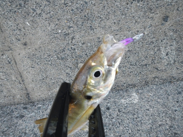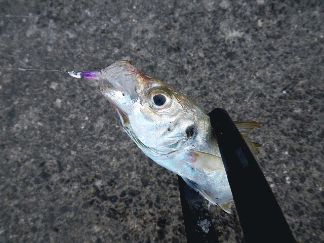 墓参りのついでにアジ調査。湾内に大量のアジが入り込んで連日サビキで大賑わいらしい。その向こう側に回遊しているであろう大物を狙ってみよう。品切れのケイムラカラーを選択しジグヘッドに装着。アミエビについた魚はやりにくいんで、サビキ軍団から離れて釣開始。ぽつぽつと当たるも20㎝までのレギュラーサイズ。一度だけロッドを弾くあたりがあったもののフッキングできず。上下から挟むと口を開けるの知ってました?フック外すの楽ですよ。また調査してきます。