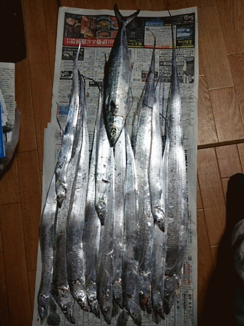 そこでシルバーフラッシュに交換し3投目でガッツリ掛かりってかたのは80センチ程のタチウオ♪時間は14時なのに良いサイズです(^_^)