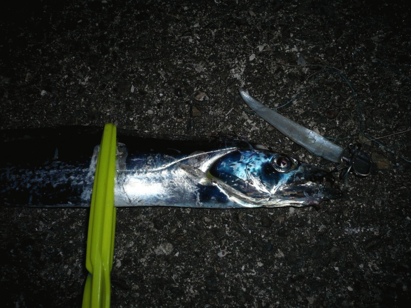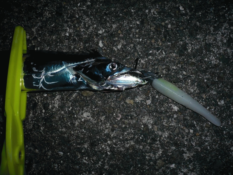 とりあえず5/8オンスのZZヘッドで始めましたが、右斜め前からの風で、糸ふけが出てあまり何をやっているかわからない中、午後6時20分にマナティーのK2で1匹釣り上げることができました。