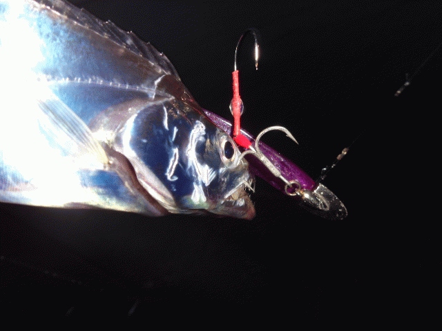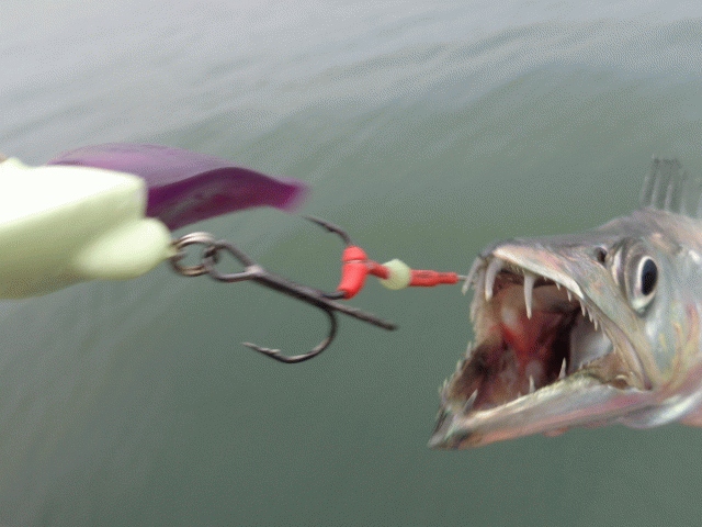 スローに小さくワインド、これにタチウオカラーのMTー20が炸裂!