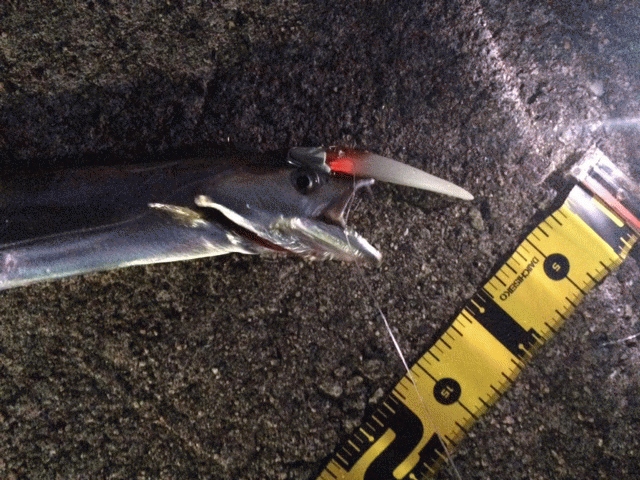 今日は試したいことがあり、武庫川一文字にタチチャレ3戦目に行きました。今日の潮は表層が濁りが入ってますが中層からはスケスケの澄み潮で難しいです。試したいこととはレッドヘッドローテーションです。この難しい潮でMT-2 MT-L6 MT-L6 MT-L5とローテーション、激渋の中、やっとMT-L5の赤ケミ入りで84.5cmゲット出来ました。周りは1本も揚げてなかったので上出来ではないでしょうか。レッドヘッドローテーション今回は激渋でしたが、次回も使わせていただきます。