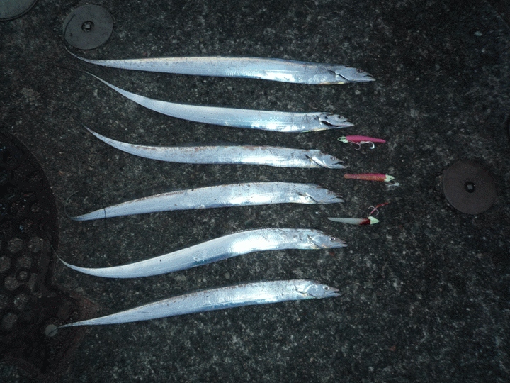仕事の前の朝まずめに行って来ました。丁度5時ごろから90mmのMT-L5でスタート。あたりはあるもののなかなかかからないので75mmのMT-L3にチェンジしたとたん2匹釣れ、日が昇ってきたので90mmのMT-L4に変えて4匹追加。日が昇りきった6時に終了としました。