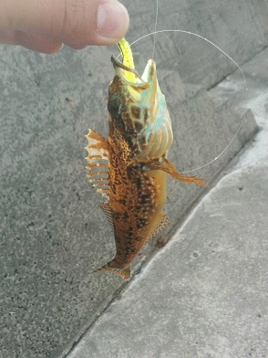 その後当たりがなくなり、ジグヘッドへ変更し沈んだテトラの