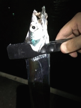 その後アタリが無くなったので、パールホワイトにチェンジすると、メインフックの周りに噛み跡が!
