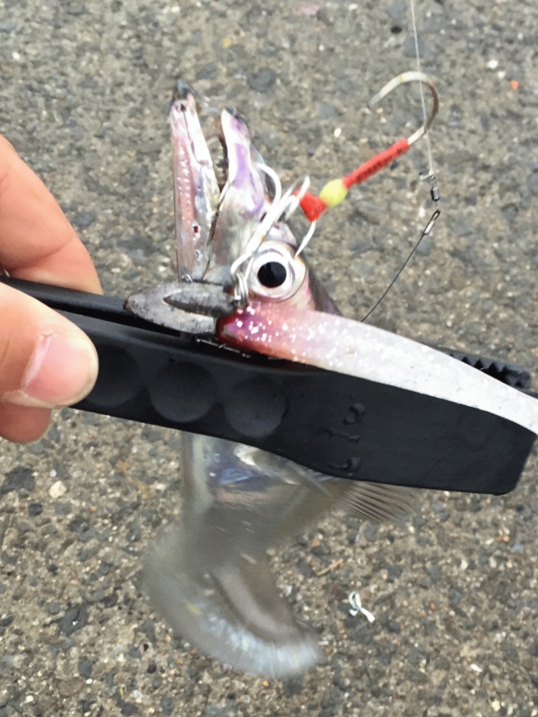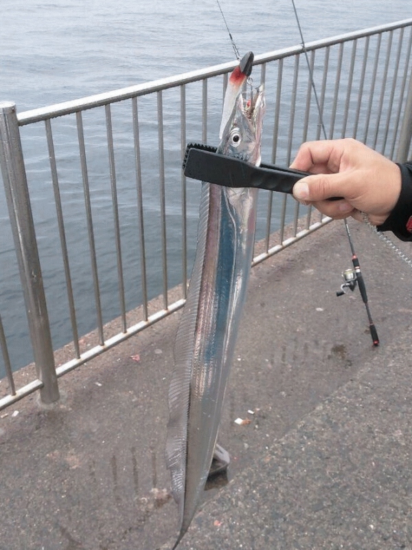 今日は雨でしたが南芦屋浜ベランダへ昼過ぎに到着し夕方までサビキで時間潰そうと思ったら横の方が15時にタチウオヒット!サビキやめてすぐマナティーセットすると2投目でヒット!その後も1本追加で16時をすぎたらあたりもなくなったので17時で納竿!雨のためか釣れ出したのが早かったみたいです。