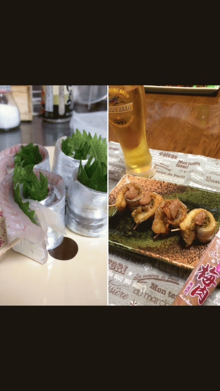 もっとフォールを意識させようとワインドシャッド75パールホワイトにチェンジして ブレイクをかすめるとゴン! やはり ワインドシャッド頼りになります。が ここ最近の時合いが短く、これでまた終了となりました‥。連日不調な気分ですが、 帰着後 最近ハマってる 太刀魚のしそ巻き天ぷら 梅肉付け で癒されてます‥。 みなさん これ 美味いので是非試して下さい!