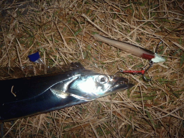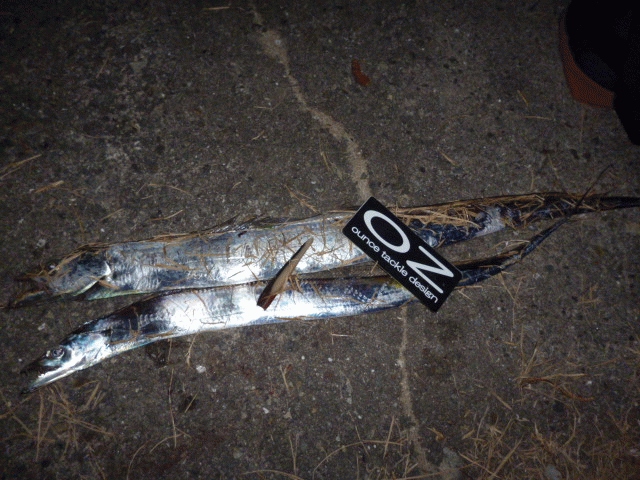 最近ショートバイトに悩まされる日々(泣)キャッチできるタチウオも減り、型もなかなかあがらない毎日(夏タチサイズが多い)。今日こそはと思い、いつものポイントへ行ってきました。先日いただいたMT-AN3(ドジョウカラー)からスタート!開始直後からアタリがありますがなかなかフッキングせず、アクションを変えながら10投目でようやくHIT!F4の良型をGET、噛み跡もよかったのでこのまま継続し、直ぐに2匹目をキャッチ。しかし20分ほどで地合いは終了し、いろいろと試しましたが魚の気配がなく、周りも上がっていなかった為、納竿としました。久しぶりにドジョウーカラーを使用しましたが、やはりタチウオに反応がよく暗くなってからもアタリが頻繁にありました。次回も使ってみます。