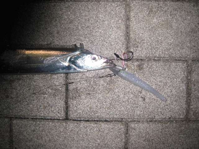 最近はどこもあまり釣れて無いんで 色々調べて南港へ。情報では17:30ぐらいから釣れるそうなんですが 明るい時間から開始。暗くなってきてケミを入れてカラーチェンジしながら ここはk-03が効くのでk-03にしたらバイトが!後ろの方に傷が入ってのでヘッドを5/8OZから1/2OZにしたらヒット! 上がって来たのはF2…(汗) 続けてゆっくりシャクッてたら足元で「ドン」と根掛かりしたかと思ったらヒット! ひさしぶりのF4!渋かった状況で周りは釣れて無かった中 タチウオ取れました!
