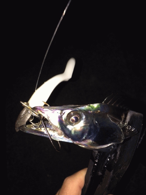 今回の朝練は、泉大津の湾奥です。AM4時半よりZZヘッド1/2oz+WSH75パールホワイトでワインドで開始です。最初はスローなワインドで誘ってましたが反応がないので、しっかりシャクりフォールを入れるとヒット!同じパターンでもう1匹追加し、カラーをグローに変更して連続ヒットで結果4匹の釣果でした。