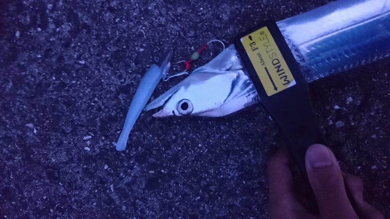 気分上々でポイントに到着したのは良かったのですが、現地で白波が立つほどの半端のない爆風で人も少なく、やる気は完全になくなりましたが魚は確実にいるのでなんとかワインドをしようとしますが、体感でも追い風15m/sはあり、4時ごろまでなにもできませんでした。