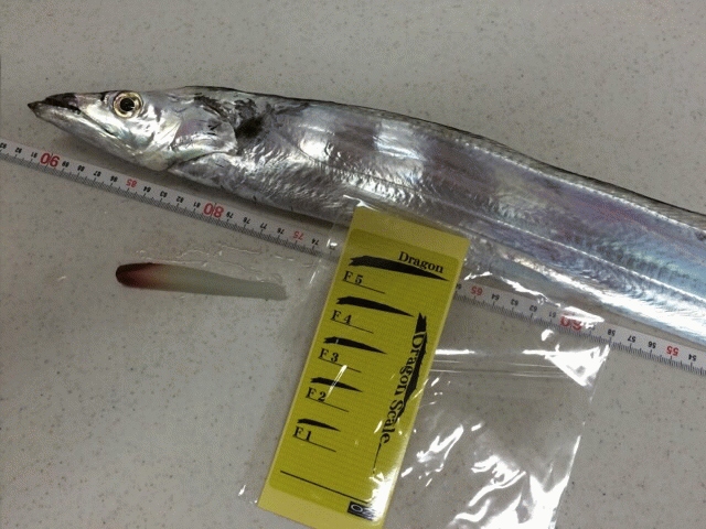 最後に足元付近で突っ込みを繰り返して上がってきたのはF4サイズのタチウオでした。ヒットタイムは19時45分でした。