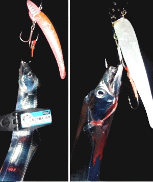 たまたまかもしれませんが、K11には小さいタチウオは反応しなかったのに、K2、K3ではすぐに反応が出た。