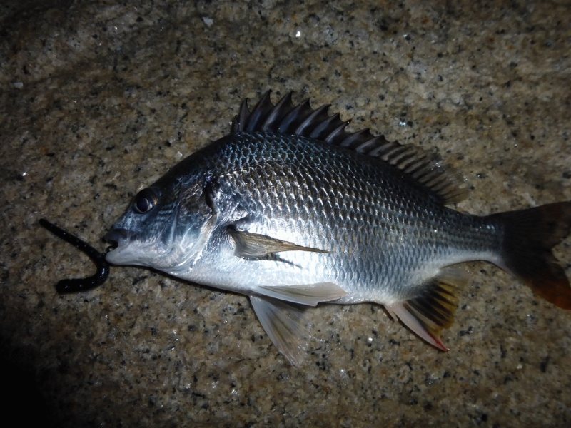 その後アタリが遠のき、カラーをダークスモーク/ブルーラメにチェンジしてキビレをもう1匹追加、25センチ位のチビサイズでした。そして潮止まりが近づいてきたので納竿としました。