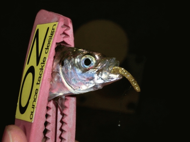 最初の1匹はスプリット0.5g+マゴバチ14.ゴールドラッシュの組み合わせ。