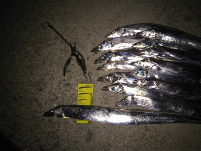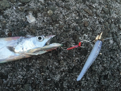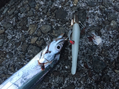 K1で何度か掛けるのですがキャッチ時にテトラの隙間に吸い込まれまくり、掛かりが悪いのかと思い、WK3にチェンジすると、ガンガンアタッてきました。ポッチャンと格闘しながら暗くなりかけてきたのでグローにチェンジ、またまたアタリが戻ってきました。