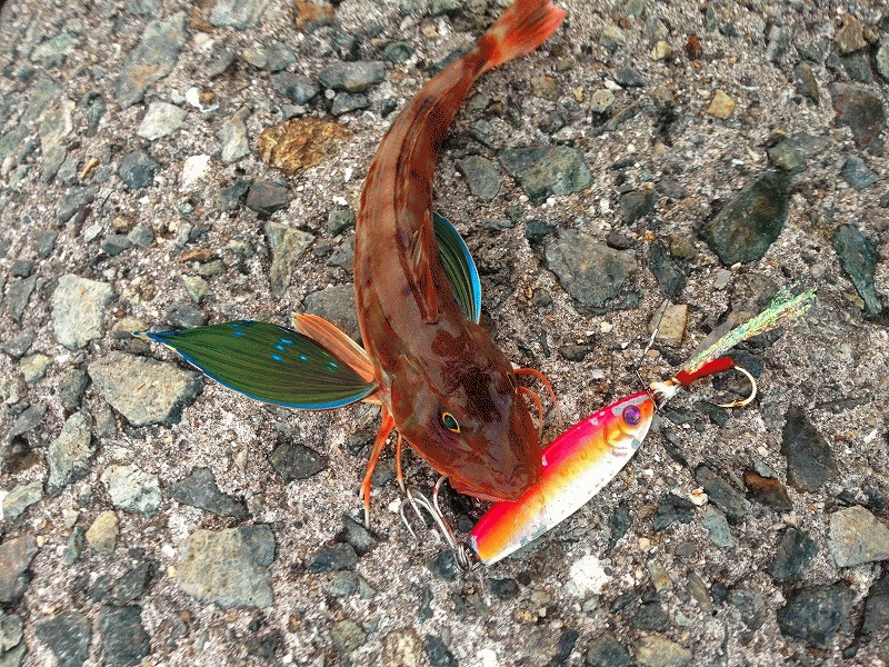 明るい時間ZZ-Stap30gで着底後アタリがでてガシラとおもいきゃ珍客のホウボウでした。カナガシラなら逃がしてたでしょうが、ちゃんと食卓にあがりました。