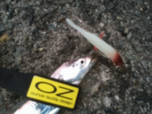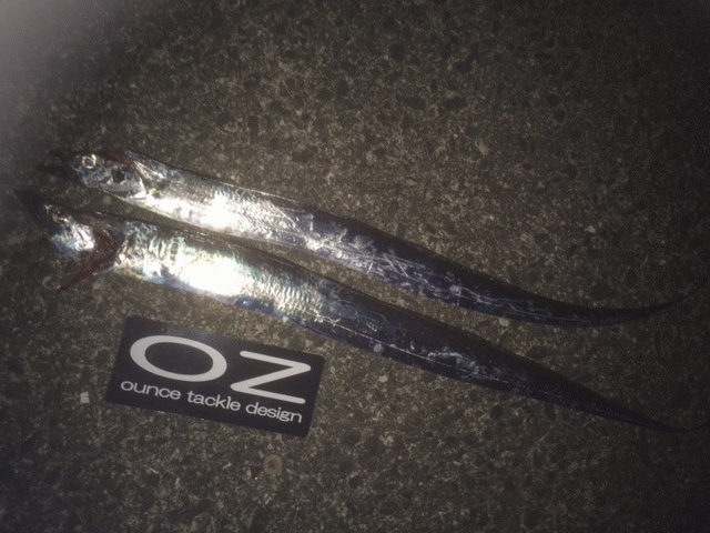 沖向きではタチウオの爆釣が続いていますが内側ではどうなのか?と岸和田市の漁港に行ってみました。18時半頃にショートバイトが1回ありタチウオの気配は感じましたが噛み後からして、魚は小さい様子。19時半を過ぎても沈黙のままでした。マナティーの特徴でもある「強制的にスイッチを入れる!」を考えながら、早いシャクリで時たまフォールで食わせの間を繰り返し・・・フォールの食わせ間で、ZZヘッド1/2+ピンテール#GLRHでF2クラスがヒットしました。その後1匹追加しましたが、沖向きに比べ魚は少ない様子でした。とりあえずタチウオ確認できました。
