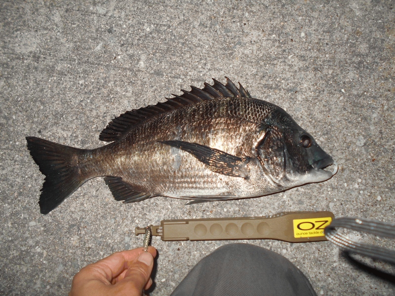 マゴバチ01パールホワイトでボトムを攻めてみると、掛かったのは約40cmのチヌ。