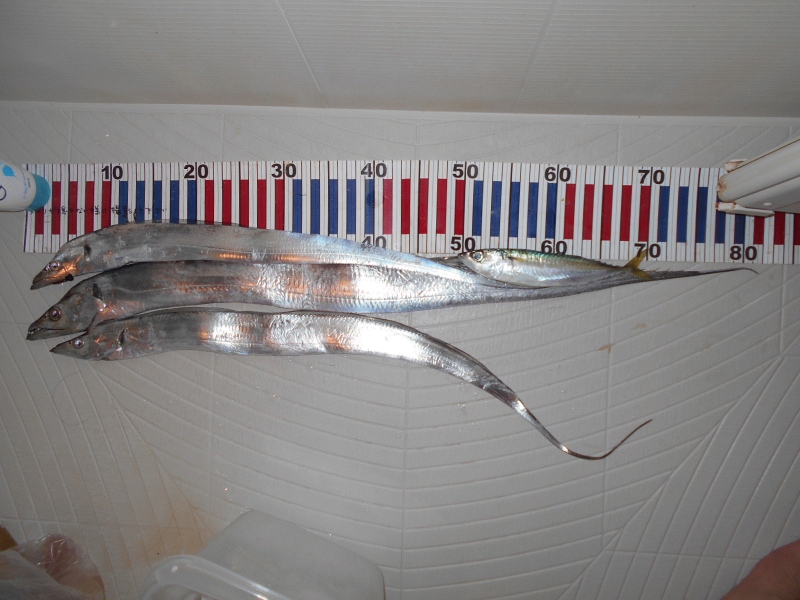 釣った太刀魚は5匹、明らかにF3に満たない2匹はリリース