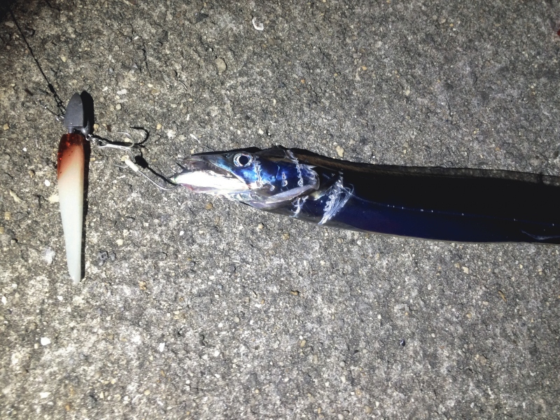 明るいうちはメタルジグで探ってみるも釣れるのは小鯖のみ。
