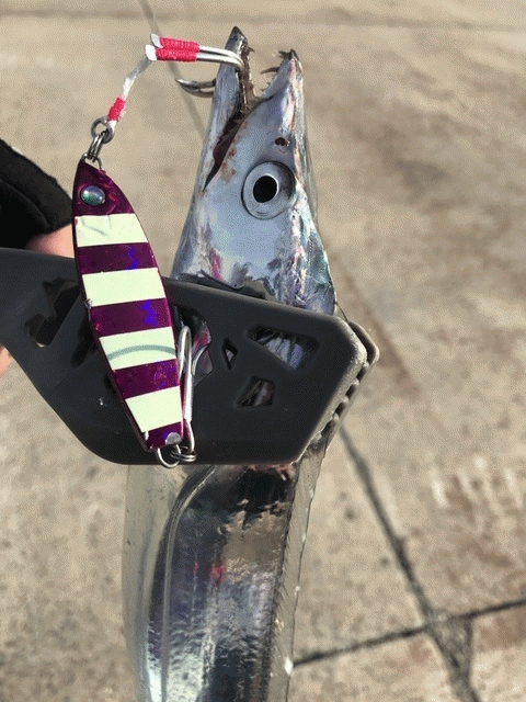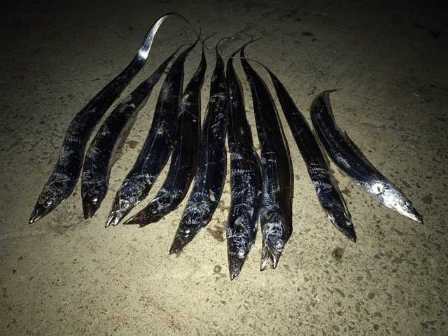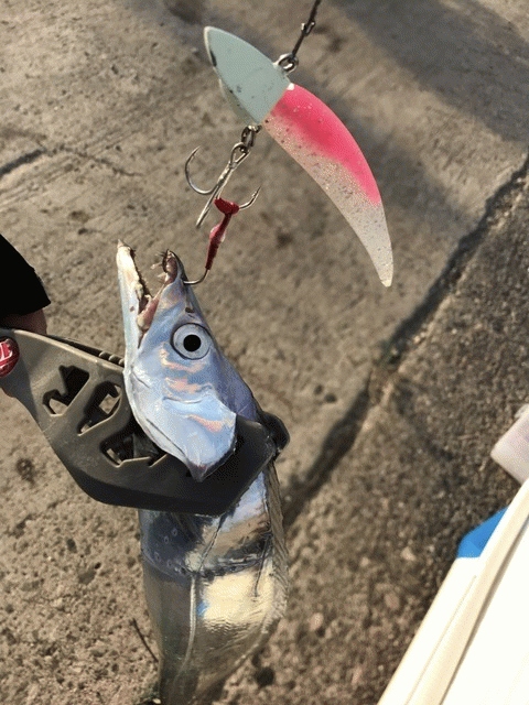 近頃爆釣が続いてる和歌山市内のポイントへ入りました。14時半頃に到着しましたが既にジグで単発ながら釣れてますやん!早速ZZZ-STAパープルゼブラグローをキャストし、ボトムから攻めてみますが無反応。約1時間程経過した頃に少し沖でナブラが発生。タチウオが乱舞し始めました!こんな真昼間に?と驚きながら、これは表層攻めだと思いカウント5からのスローに5シャクリ1フォールでガツンと!70センチ、F2.5ですが今期初の嬉しい1匹でした。