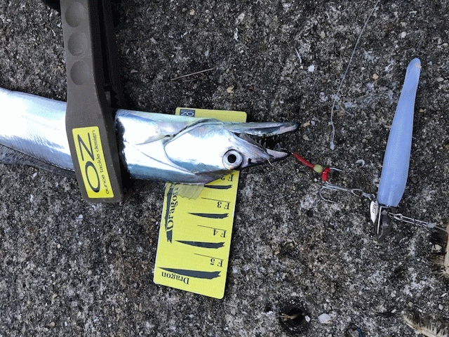 イッパッチ杯のプラクティスに武庫川一文字に行って来ました。タチウオの時間まで少しの間があったので、ZZ-STAP 20g ピンクイワシを投げてみると…48cmのサゴシがヒット。時間まで、アクション、カラー、メソッドを確認出来ました。タチウオの釣れ出しは17:15 MT-01で…その後、MT-K2で棚の調整をしながらレンジキープを確認。18時頃には時合いらしい時もあり、4尾追加。数釣りが目的ではなかったのですが、釣れると嬉しいものですね。