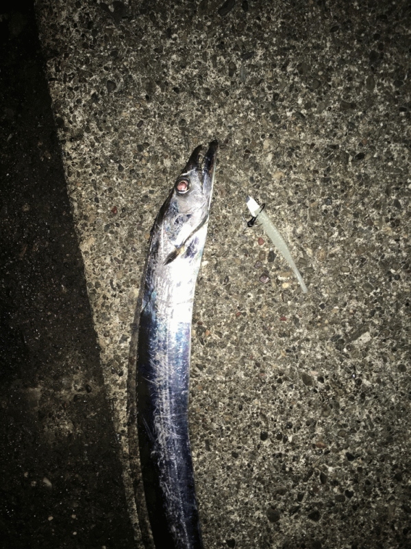 3連休2回目のタチウオゲーム。今朝は深夜から釣っているウキ釣りの方がいち早く爆釣ているのを横目に、信頼のワインドシャッドでスタート。1投目、表層付近でバイト。やっぱり自分の中では、信頼のワインドシャッド・ルミノーバ。このルミノーバで表層付近、バラしもすこしありながらもフォールで反応が良く、5,6匹釣ったところで、反応が薄くなった。そこで、ピンテールを投入。ピンテールで何投下していると、再び反応が。このピンテールも反応が良く、6匹前後。小型のものは4匹のリリースを含め計14匹、サイズもF4クラスのが釣れ、満足のいく釣果となりました。
