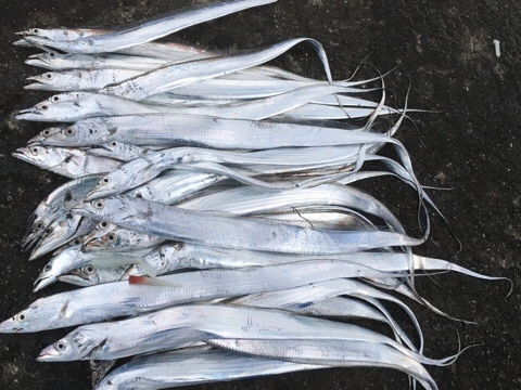 ポイントに着くなり、海面にタチウオがジャンプ!