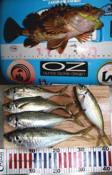 終われば、アジ 26~35㎝が5匹、ガシラ 15~21㎝が5匹の計10匹で