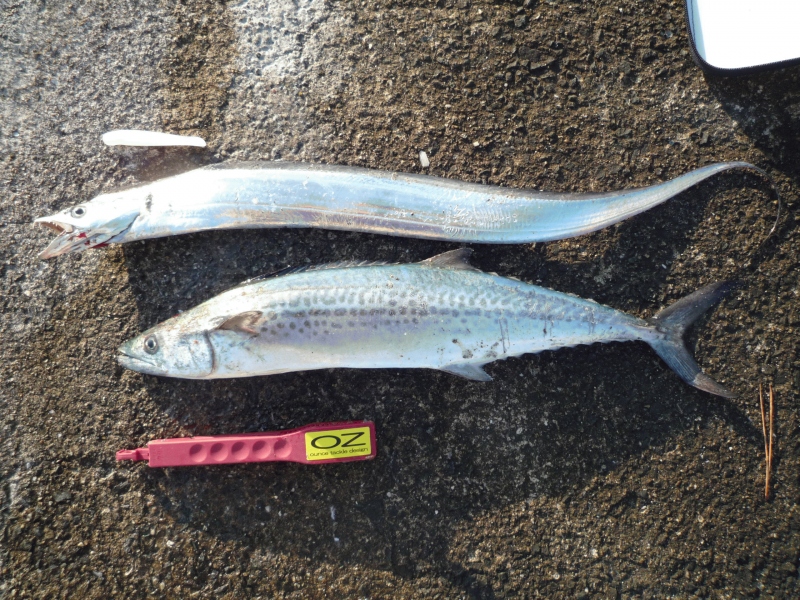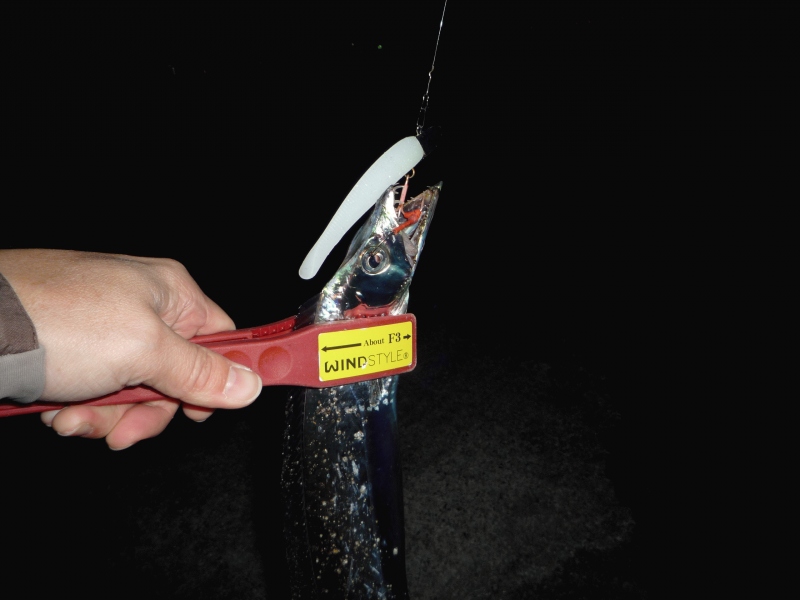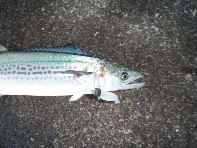 竿が強烈にしなります。あがってきたのはサゴシでした。