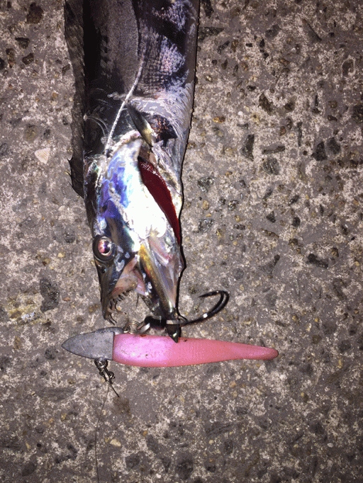 最後はピンクファントムで沖のボトムから連れて来てヒットしたタチウオは指3本余裕で超えててまあまあのサイズでした♪
