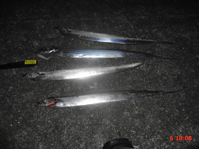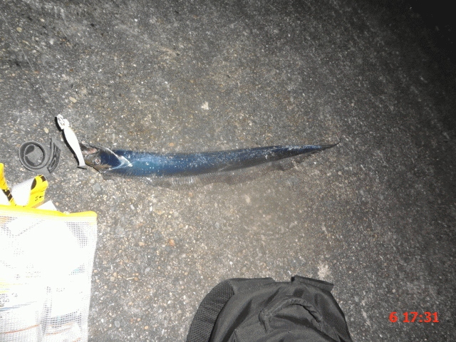 神戸某所へ。カサゴを釣った後、午後5時30ごろから、ワインドシャッド75、色はスーパーグロー、8分の5オンスで中層をしっかりしゃくり、ただ巻き、岸近くで重くなったので、合わせると、85センチぐらいのタチウオ、それから30分ぐらいで6回ぐらい当たりがあり、90センチオーバーを含め4匹、もう一匹ほしいなとしゃくるも釣れず、他のワインダーさんの助言を受け、丁寧に探ると、8時30分ぐらいにしっかりしゃくって丁寧にただ引きで、足元中層でヒット、小さめ80センチ、暗い時間帯はあまり釣れたことがないので、貴重な1匹でした。
