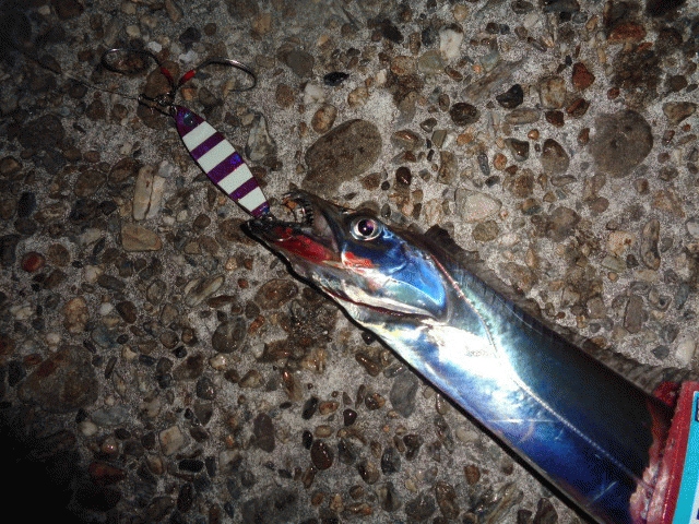 日没から30分が経過、ほぼ暗闇に包まれたGENBAにジグが舞う!ZZ-STAP30g #Z2パープルゼブラグロー、一番自信のあるアイテムで挑みます。