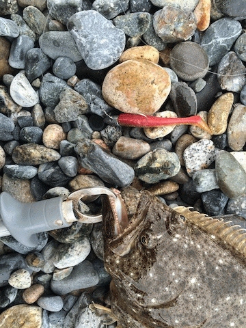 足場が高く、タモ入れに苦労したものの、今年はじめての鮃をキャッチ。