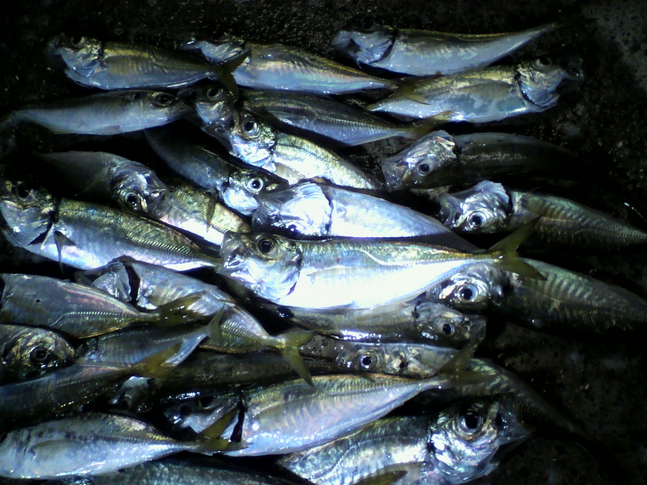 前回も良かったポイントに行きました。一投目から釣れ続けますが、今日はサイズの幅が有るようです。少しでも大きいのを釣るために試行錯誤、方向やレンジ、カラーを変えてみました。パールホワイト、グリーンについては奥まで吸い込んでいる事が多く、沖目の中層で最大クラスを掛けました。後処理が大変なので二人で40匹程釣り、終了しました。
