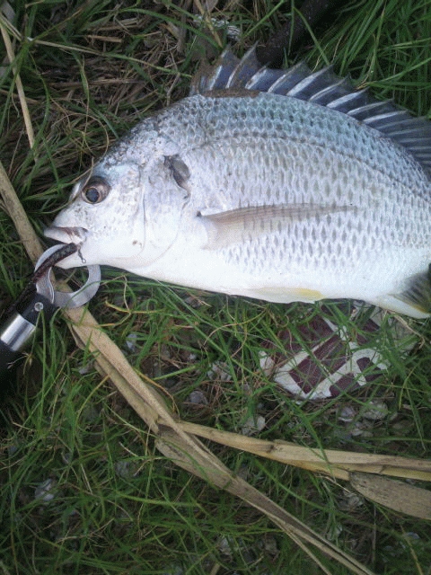 なんと1投目からヒット! フッキングも決まり横に居たカップルに「どうよ 俺カッコいい?」と思いながら一匹目GET。3投目にもヒット! 手応え充分な40センチ。しかしこの後アタリも無く諦めてたらヒットしたのにバラしたので終了しました。