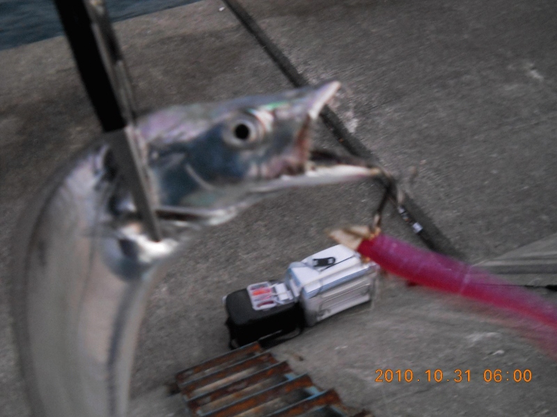 台風後ということも考慮しながら万全の準備で1番船で現地入りです。最初は静かな海でしたが、シャクリ始めて30分経過したときにロッドに違和感が・・・。誘って誘って合わせた瞬間にラインを切られました・・・。どう考えても「今しかない」と思い、邪道ですが、ショックリーダーレスで挑戦です。しかし乗ってくれません。それでも諦めずに大切にシャクリながら6時に初ヒットです。2本目はラインを切ったであろう憎っくきサゴシです。その直後、明らかに重みのある感触を味わいながら、ゆっくりゆっくり大切に水揚げです。釣った直後は97cmです。本日の目標は「ドラゴン」のため19時まで粘りますが雨風と川のように流れる水潮に負けて納竿しました。釣ってから13時間後に計測したら95.5cm・・・結局5位です。欲出さずに朝で帰っていたら3位だっただけに少し反省もしましたが10月は存分に楽しませていただきました。11月14日はリベンジです!