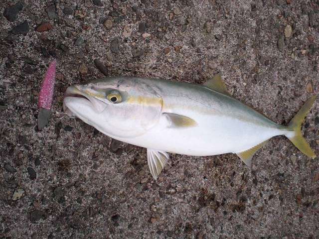 昨夜の釣行後の呑み過ぎがたたり寝不足での釣行。ワインド動作のロッドの上下が催眠術の振り子の様に眠気を誘います。時間が経過し周りではポツリポツリと太刀魚が揚がるが私には当たりすら無し。棚が分からないのでフルキャストしフォールが少し入る位に誘って来ると「ギュイーン」とヒット。その後もヒットするが痛恨のフックアウトで太刀魚タイム終了。明るくなってからは青物狙いでキャストを続けるが潮が徐々に緩みだし潮止まり。投げれどシャクれど全く無反応。腕はシャクリ続けているが頭は寝不足で機能停止状態が続く時間帯。そんな状況でもシャクリの感覚から潮が少し動き始めたのを察知した右腕は自然にフォールが少し入る動作に...すると「ゴン!」一気に眠気が覚めて臨戦態勢。サイズのわには強烈な引きの貴重なイナダくんゲットでした。
