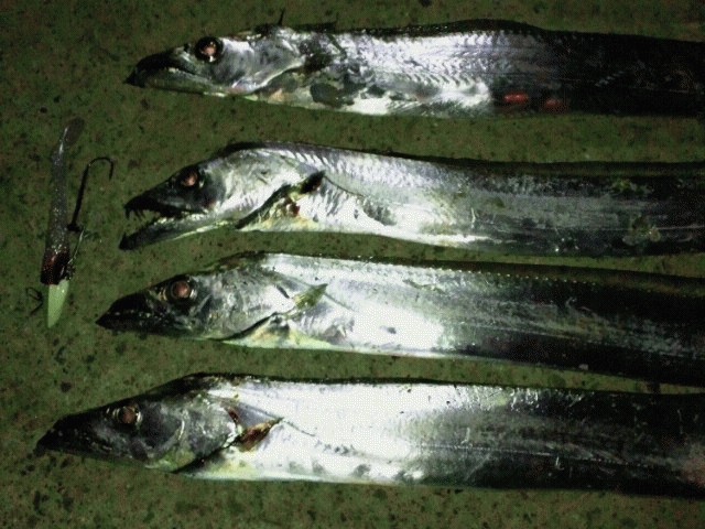 本日、鳴門は北西の風速10m/sの強風で風向きと潮流方向が同じで横に流されるだけなのでワインドするのは無理と判断、激流の下げ潮狙いで出撃しました。ミノーで勝負。ZZヘッド5/8ozとMN-2レッドヘッドの組み合わせ。着水と同時にリトリーブを開始し表層を意識した活性の高いタチだけを狙う作戦に。反転流を狙いキャスト!数投目、「ガツン!」と来ました指3本半。ですが短い…80cm。1匹60cm級指2本チョイが釣れたのでリリースしました、一瞬ゴミかと思いました(笑) 同パターンで計5匹の釣果でした。本日最大と思われるタチは抜き上げに失敗、ナチュラルリリース「勿体なかった~」(苦笑) 激流に逆らうように引き寄せるのでかなり重たい、他の場所で釣るのと比べると引きの強さは倍くらいに感じます。メチャクチャ楽しい!鳴門最高!止めれません(笑)