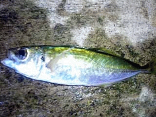 釣り開始早々、20cmアジかかり、立て続けにヒット!