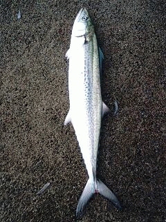 本日開始のカラーは、昨年新潟でのワインド講習を行いました釣具店の福袋に入っておりました新色?にて行いましたが、当たりすらなく今はカラーがあっていないのかと思いカラーローテーションを繰り返してみましたが、当たりも来ず使っていましたショアワインダー872Mの5/8OZのZZヘッドから以前ショアジギング用に使って降りましたMC社のライトショアジギングの10フィートの竿に1OZのZZヘッドにマナティーMT-K1に変更し遠投しシャクッていましたら、ガツンと当たりサゴシを1匹ゲットしました。