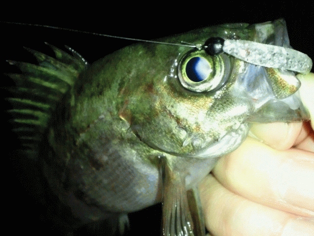 サタデーナイト、潮まわり良く大潮なので期待してのメバリング釣行です。メバルには好条件とされる満潮時前後を狙って出撃しました。今日はマゴバチとカッティングベイトを表層狙いと中層以下狙いとでワーム使い分けてみました。表層ライズメバルにはマゴバチのカラー13で狙い撃ち17~18cmクラスを11匹、中層以下にはカッティングベイトのカラー08を20UP狙いで使い、予定どおり22~24cmを3匹ゲットする事ができました。この2種&2色を使い分け、合計14匹の釣果でした。この2色の選択は、ただ使いたかっただけで意味はありません、気分です(笑) アタリはポツポツでしたがこの日最大の24cmはブルーバックで引き強く、かなり楽しめました。 春メバルシーズンの到来です!