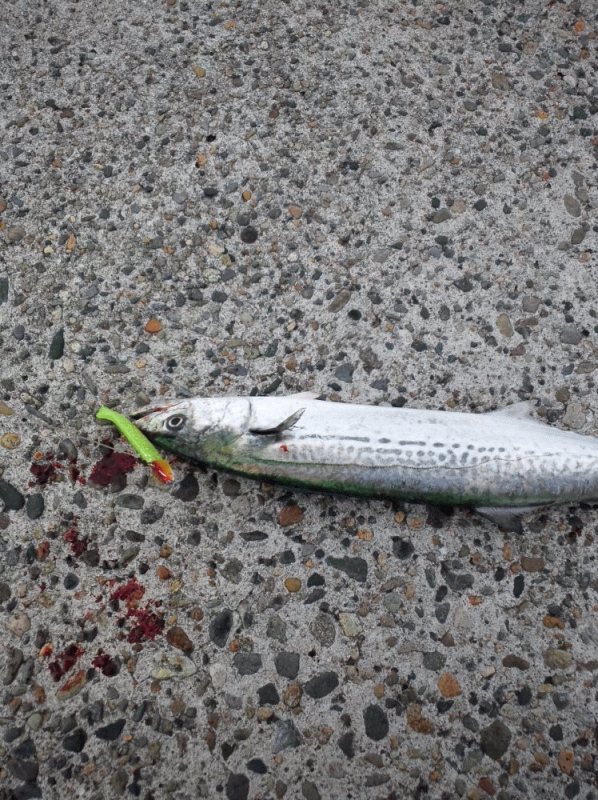 今年初の魚!晴れると思いきや日は射し込まず風もサゴシも冷たい(゚◇゚)そんな中バラついた時合いが来てフルキャスト!食いが極浅と聞いていたので最初に縦シャクリでアピールしその後はやわらかな横しゃくり…我慢して我慢してドン!新品のマナティーがボロボロに…食い渋いのにここまでガッツかせるMT-K7に感謝!