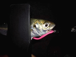 今宵もウチのチビスケお気に入りのアジフライのために鯵を求めて深夜徘徊であります。最近は気温と根性の都合ですっかり夜釣り専門のヨズラーに♪ 最初に入ったポイントはいつものところ。ジグヘッド1.5gにて時々小鯵らしきアタリはあれど乗りません。乗せられません(ToT) 1.5gを0.75gにすると…届きません(x_x; 釣友と合流のためあきらめて移動。次のポイントは…ま~ったく魚影無し。見切りをつけ深夜にまた最初のポイントに戻り、立ち位置を変え最近ピンチの時に繰り出すワタクシの個人的秘技「マイクロワインド(仮称)」を駆使し…といいましてもダートしそうなジグヘッドにマゴバチやカッティングベイト2インチをセットしてワインドさせるだけなんですけれど…ようやく小鯵ゲット!少しでもアジフライサイズに近づきたいとカウント3づつ上から下へ探るも下の下まで唐揚げサイズしかおりませんでした~(ToT) マイクロワインド…アジのみならずガシラ、キジハタ、メバルの中型までを引き出してくれライトタックルで楽しめました♪