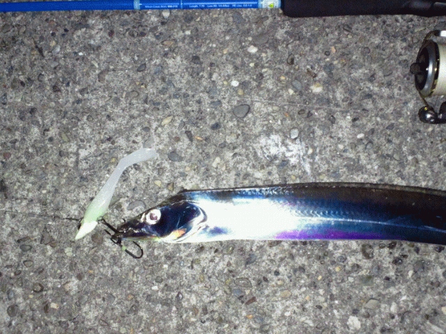 スタートフィッシングは満潮の潮止まりからの下げ始め、いい感じで潮が動き始める。まずは匠魚75の08スーパーグローで三投目、「ガツン」と幸先良くヒット。途中リーダー上で切られラインブレイクする不運もあり、マナティー90の01パールホワイトに変更後もヒットした。もう少し数釣れると良いのだが初心者の私にはなかなか難しい(笑)それでもやっぱりワインドは楽しい~